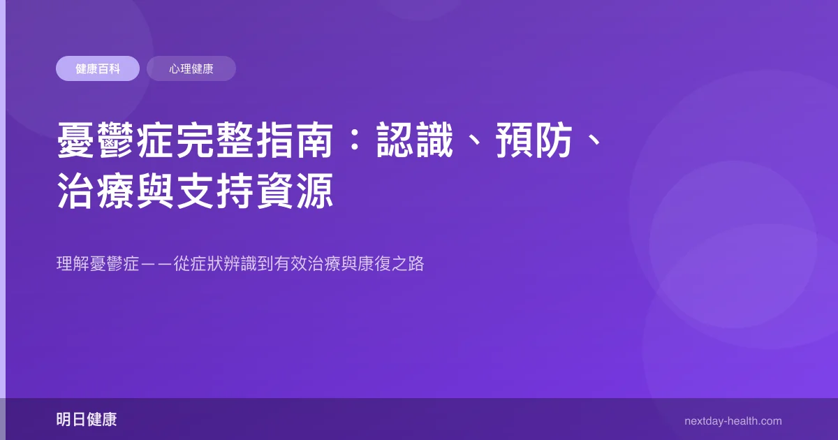 憂鬱症(Major Depressive Disorder, MDD)是一種常見且嚴重的精神疾病,以持續性的情緒低落和對事物失去興趣或愉悅感為主要特徵。