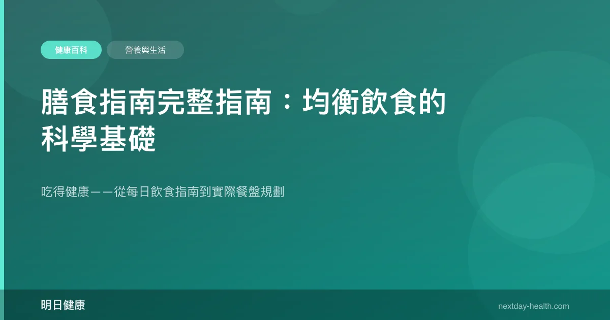 膳食指南是基於營養科學研究,為國民提供每日飲食建議的官方指引。台灣的「每日飲食指南」由國民健康署發布,提供各年齡層的營養建議。