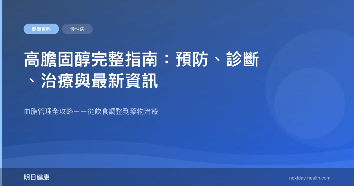 高膽固醇(Hypercholesterolemia)是指血液中膽固醇濃度超過正常範圍的狀態,是動脈粥狀硬化和心血管疾病的主要危險因子。