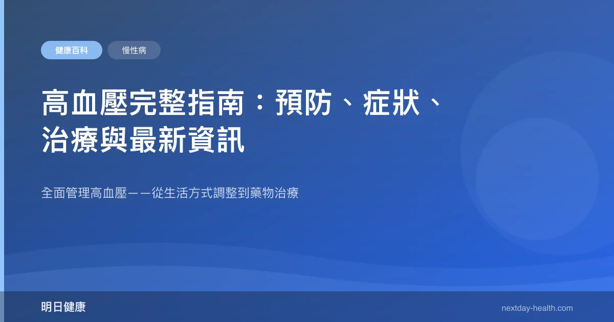 高血壓被稱為「沉默殺手」(Silent Killer),因為大多數患者沒有明顯症狀,但長期高血壓會損害心臟、血管、腎臟和大腦。台灣約有 508 萬成人高血壓患者,其中近三分之一不知道自己有高血壓。